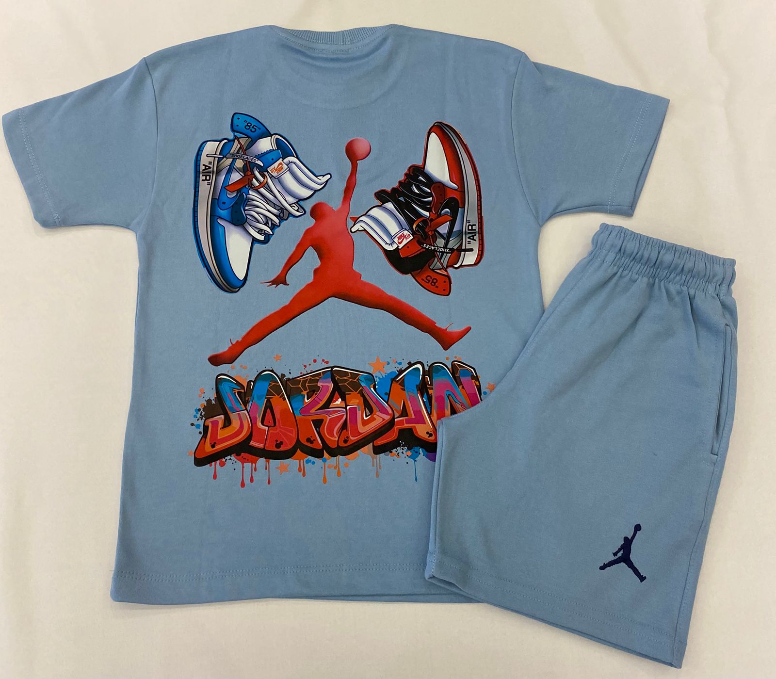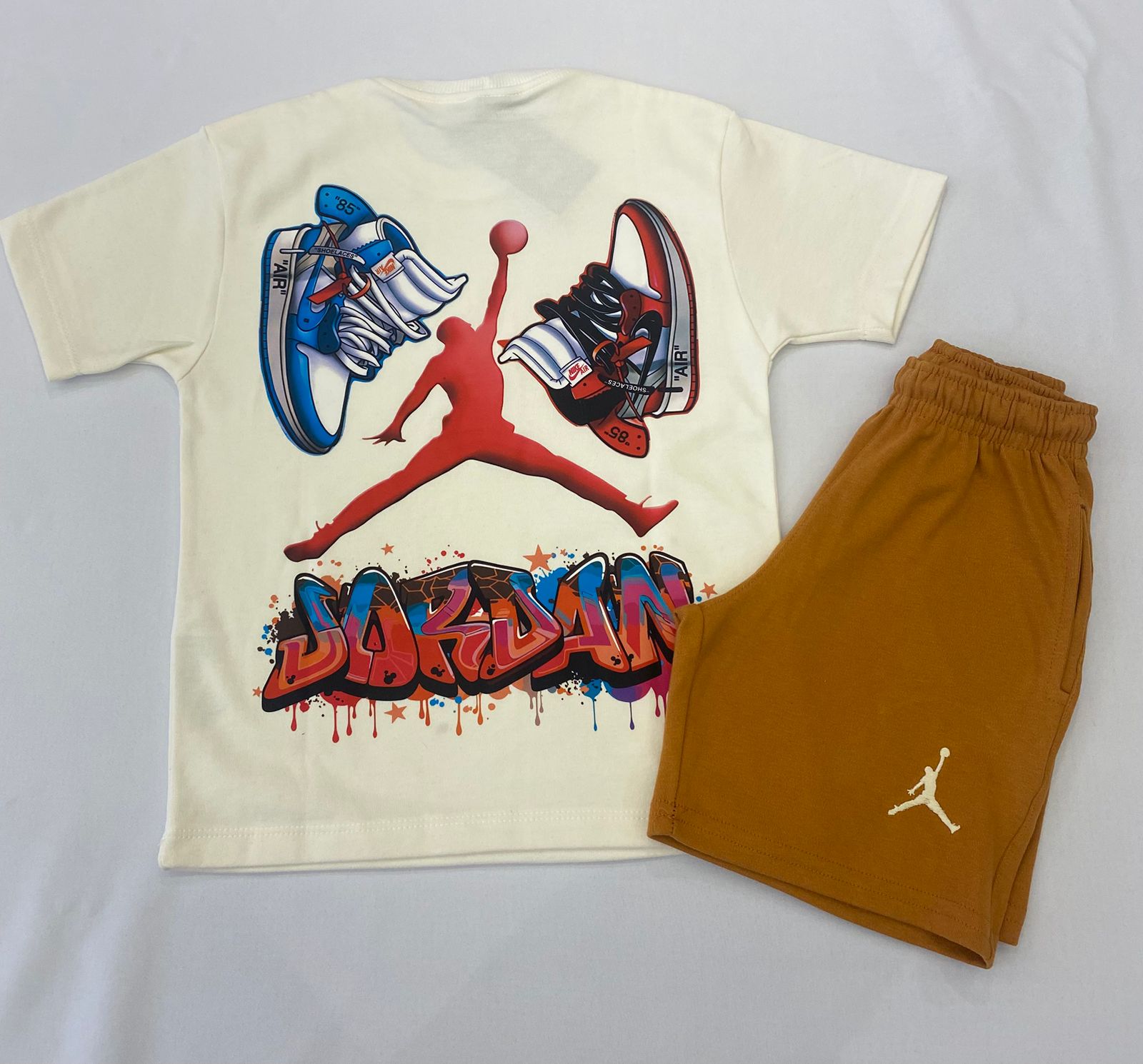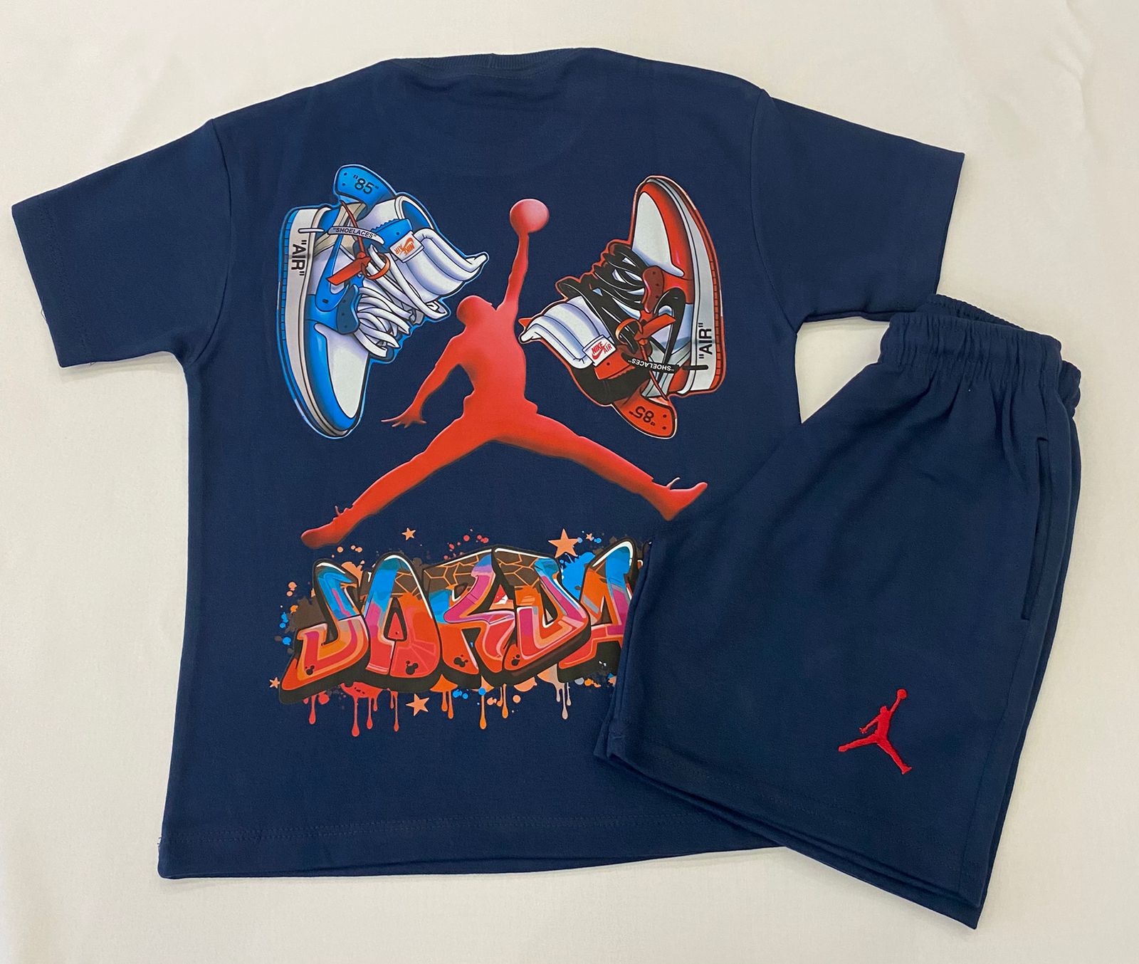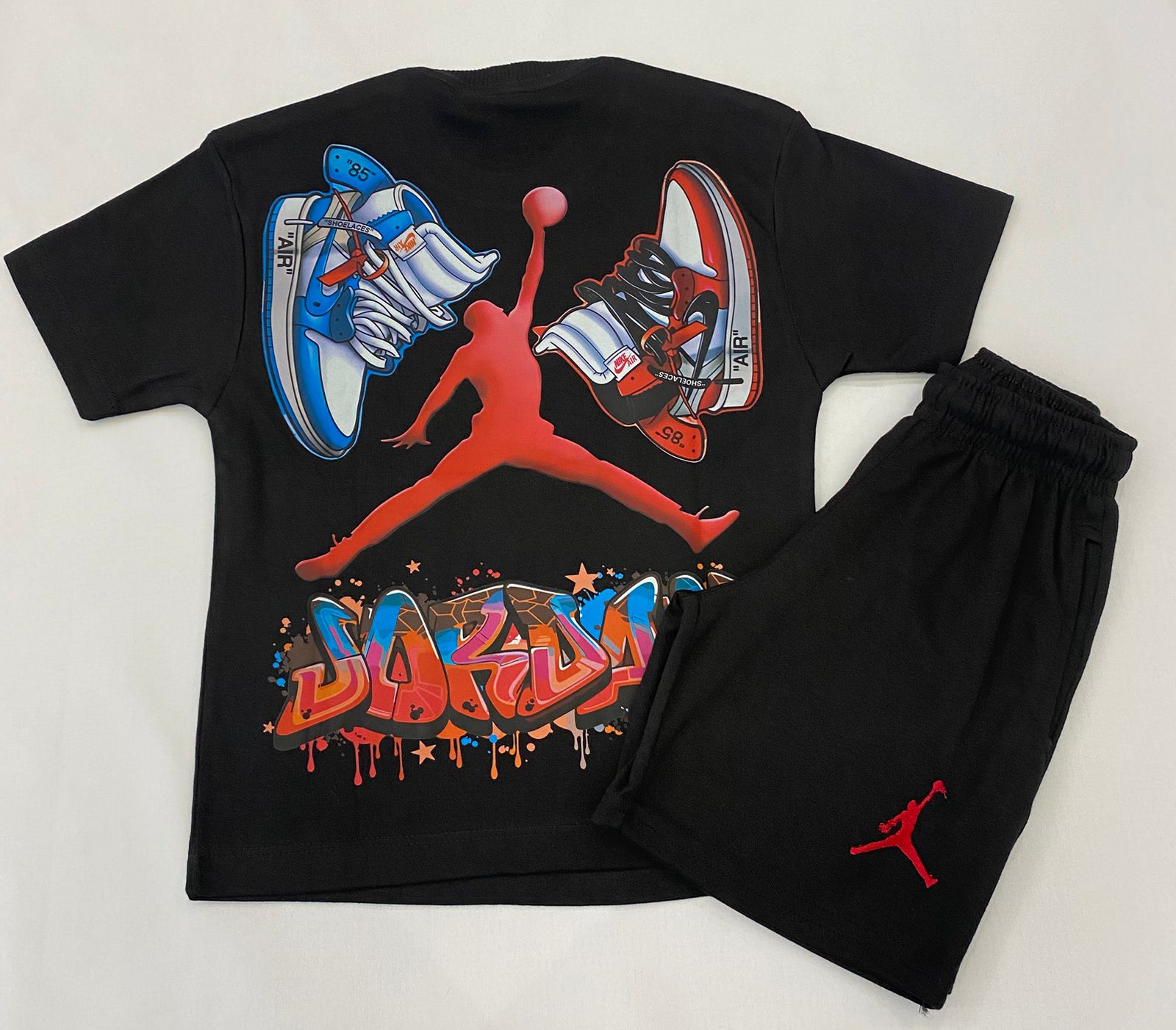 Confeccionado em material de alta qualidade, o conjunto se destaca pela estampa exclusiva de tênis nas costas, trazendo personalidade e identidade forte ao look.